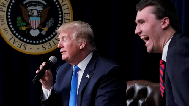 只不过,柯克并没有像很多人那样完成高等教育并拿到学历。公开报道显示,在短暂入读了一所公立高校后,柯克于2012年辍学,并将他全部的精力都用在了搞政治上。18岁的他与一名大他50岁的美国“茶党”运动人士,合伙成立了民间政治团体“美利坚拐点”(TPUSA),开始在年轻人群体中做起保守派思想“传教卫道”的工作,并得到共和党金主的支持。