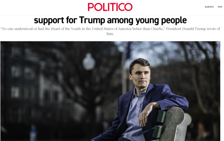 “政治”新闻网还特别提到,柯克与其他年轻美国保守派活动人士不同的一点是,他会主动前往各个校园,就性别、种族、堕胎等美国社会的敏感议题进行辩论,以此为保守派吸引支持和选票。他还专门成立了一个名叫“学生支持特朗普”的组织。