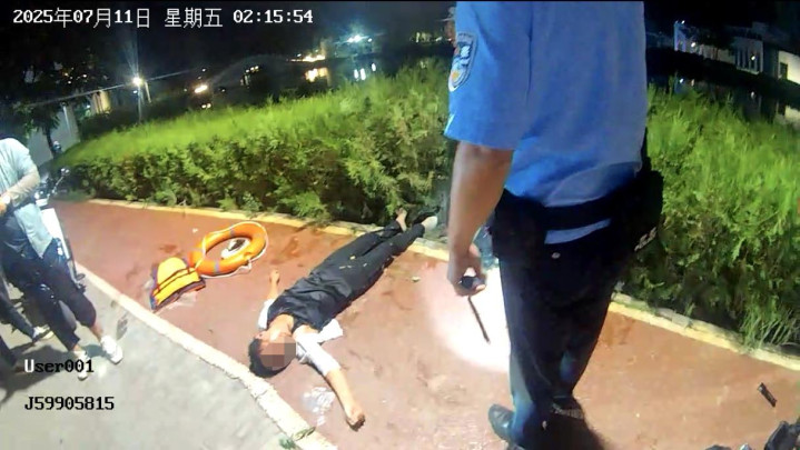 搜寻过程中,张凯突然听到“扑通”一声落水声。他循声疾奔,发现一名女子已在湖水中挣扎。危急关头,张凯毫不迟疑,纵身跃入湖中,奋力游向轻生女子并将她向岸边拖拽。此时,一名路过年轻男子也伸出援手,果断跳入水中协助张凯。
